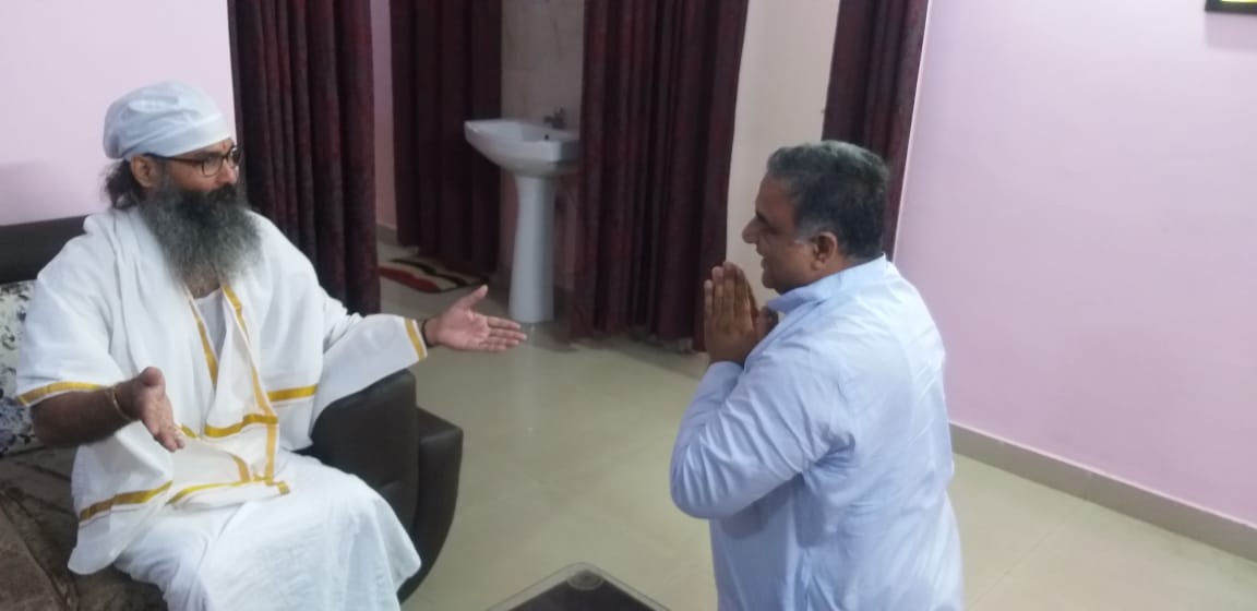 "ब्रह्मयोगी" आचार्य विनम्र जी के सानिध्य में मार्गदर्शन लेते हुए एक समाजसेवक ।(फाइल फोटो)